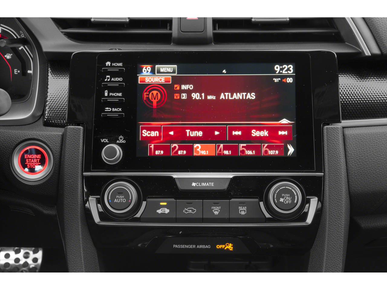 - Radio: 180-Watt AM/FM Audio System -inc: 8 speakers, 7-inch display audio w/high-resolution electrostatic touch-screen, knob and hard keys for primary controls and customizable feature settings, Bluetooth HandsFreeLink, Bluetooth streaming audio, radio data system (RDS), speed-sensitive volume compensation (SVC), 1.0-amp USB audio interface port in center console, Apple CarPlay integration, Android Auto integration, HondaLink, SMS text message function, 1.5-amp USB smartphone/audio interface in lower front console and illuminated steering wheel-mounted audio controls