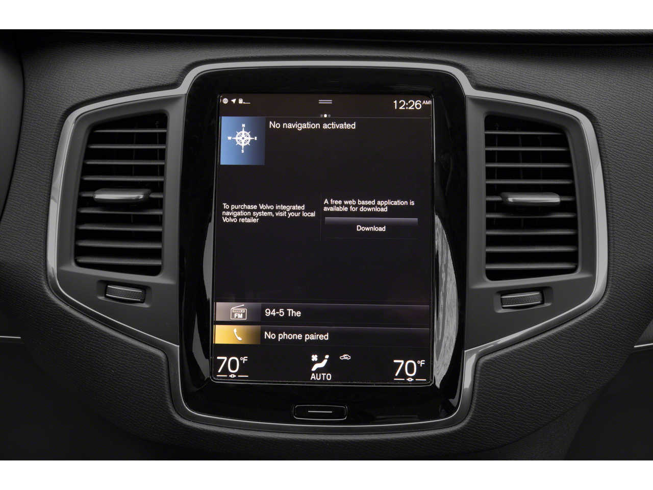 - Radio: High Performance Audio System -inc: 220-watt audio w/10 speakers including subwoofer, 9" Volvo Sensus touchscreen display, Bluetooth® connectivity w/audio streaming, SiriusXM satellite radio w/3-month trial subscription, smartphone integration (Apple CarPlay/Android Auto), 2 front USB connectors, voice control and WiFi hotspot w/complimentary trial subscription