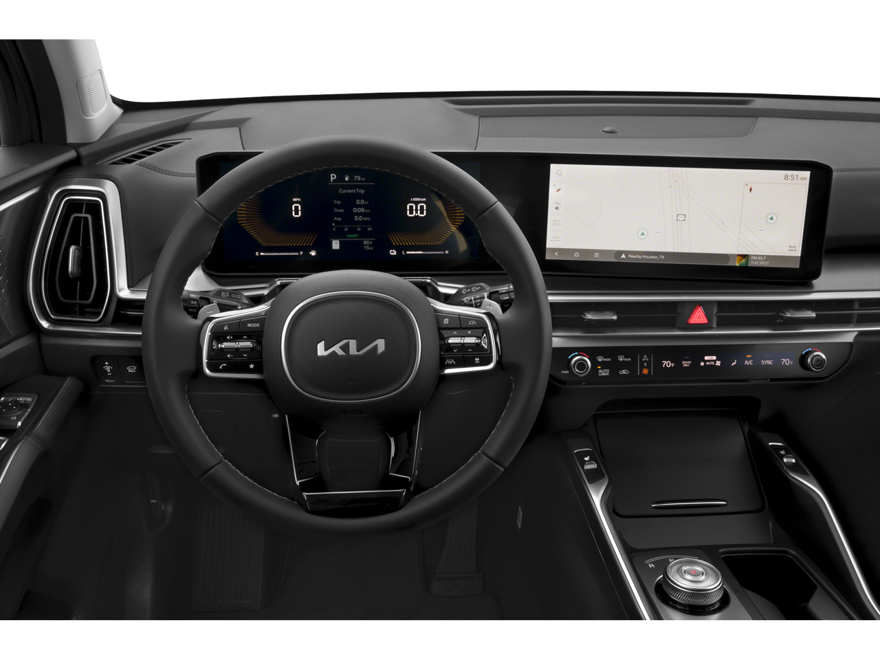 - Radio: AM/FM/SiriusXM Audio System -inc: 12.3" ccNc touchscreen, HD Radio, modem, navigation, over-the-air updates, Kia Connect, Wi-Fi hot spot, 6 speakers, Bluetooth, voice recognition, wireless Apple CarPlay, wireless Android Auto and USB connectivity